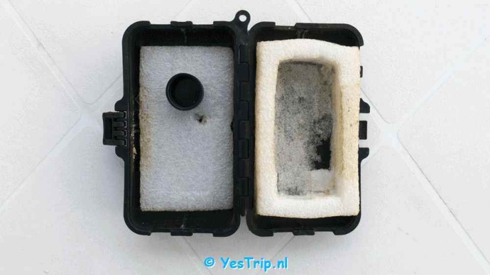 Last but not least 2 I found a small toolcase in a china bazaar. I cut out the interior and put the foamcase of the old Mobius 1 in it. This is now a sturdy case that functions very well in storing and protecting the camera. The Mobius Maxi came in a nice and quite sturdy paperbox (but without foam) that however will not last very long when always cycling.